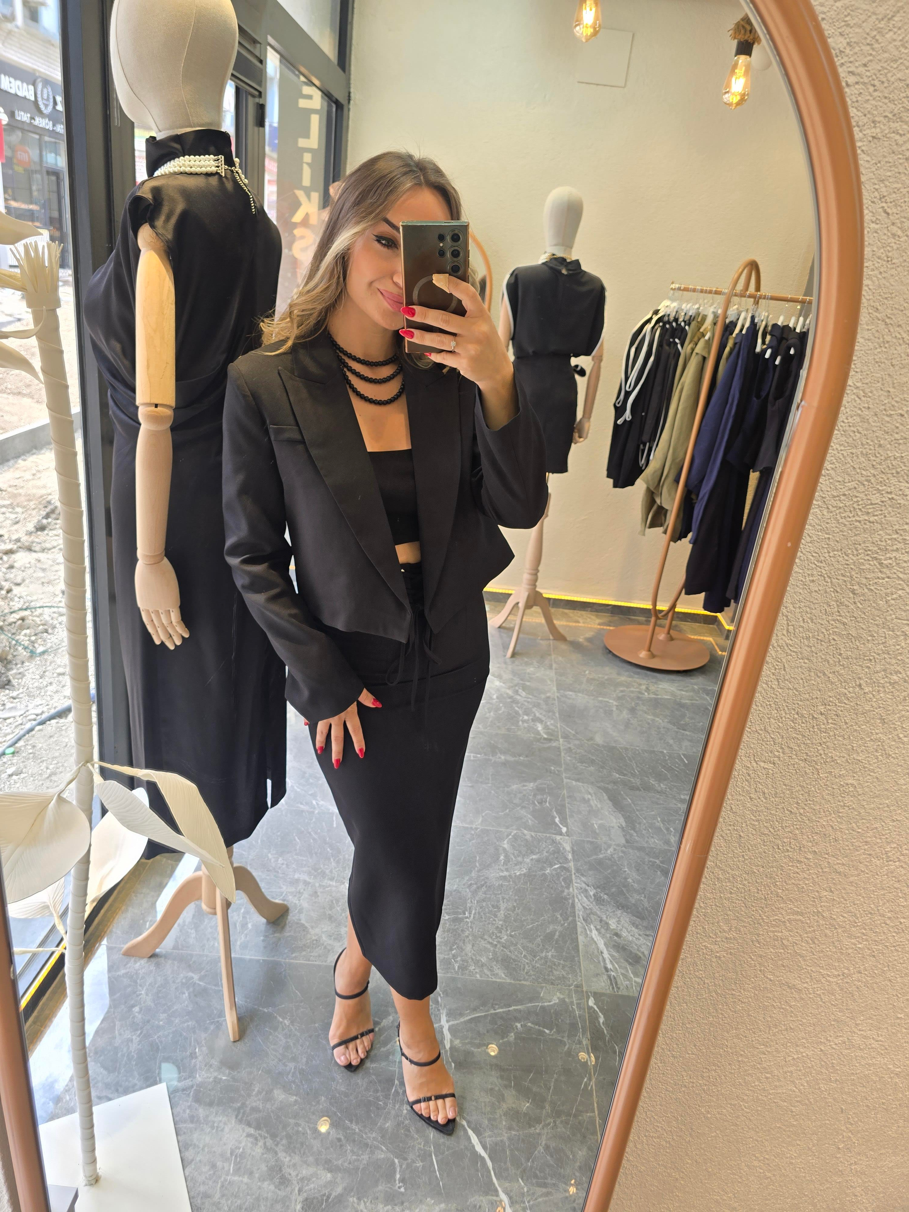 KISA VATKALI SİYAH BLAZER CEKET