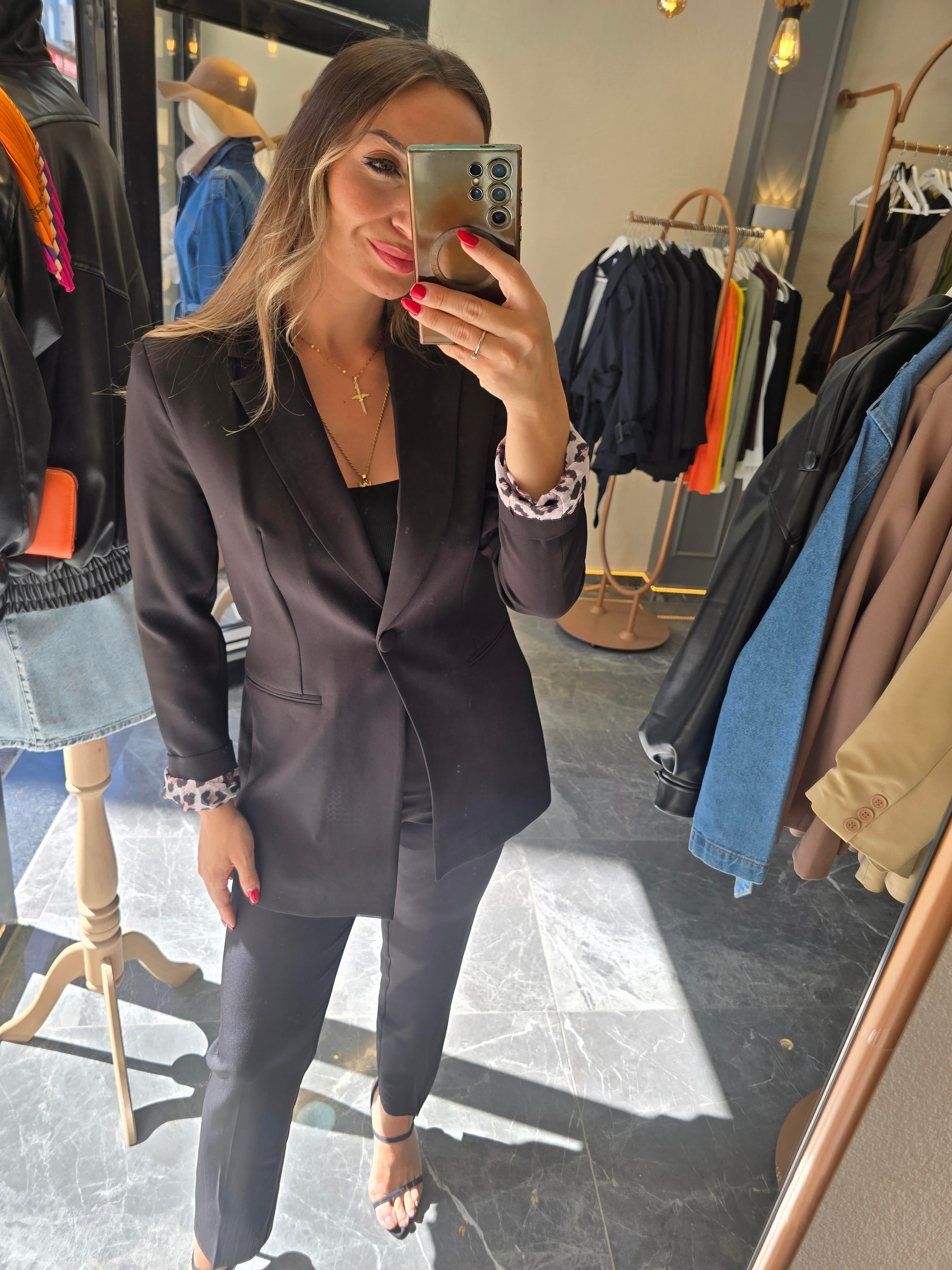 OTURTMALI CEKET İÇİ LEOPAR ASTARLI BOY KALÇA KAPATIR UZUNDUR